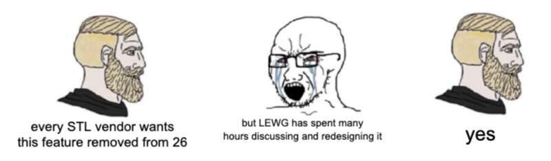 An even bigger help was the number of Standard Library vendors saying “I’ve looked at this spec now, and nobody will be able to use this. This is horribly messy.”